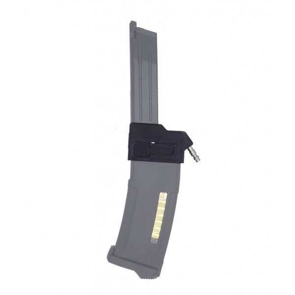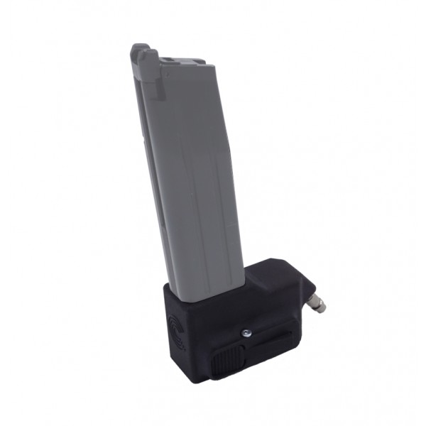 Cette adaptateur permet de raccorder un chargeur M4 sur un pistolet GBB Hi-Capa (AW Custom série HX, Tokyo Marui, WE) et de le connecter en HPA (Air comprimé en bouteille).