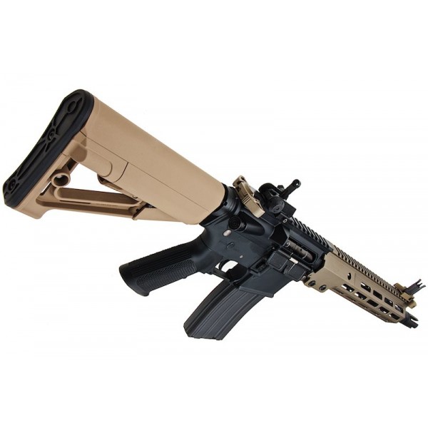 The charging handle allows the user to load the first round, the bolt catch can be operated after opening the bolt and changing magazines, and the STR-type stock can be adjusted to six different lengths.