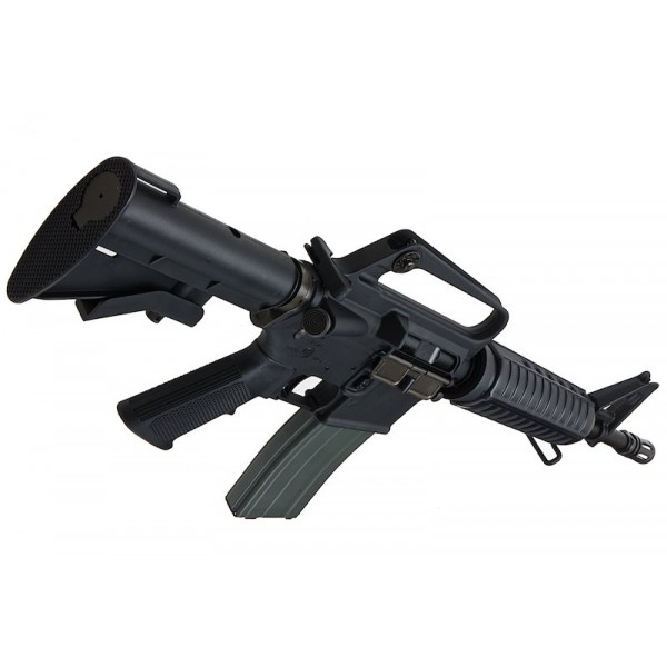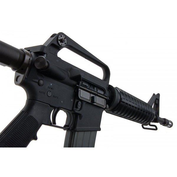 This product styling is taken from the Model 733 Commando of the real firearms manufacturer - Colt. It includes a 11.5-inch outer barrel, a CAR-15 style front sight, a special CAR-15 skinny round carbine handguard, and a carrying handle upper receiver, CAR-15 late-type dummy forward assist knob, CAR-15 early-type polymer buttstock, etc... plus the lower receiver with a fully authorized Colt M16A2 marking, all the classic appearance details of the Colt M733 are integrated in one place.