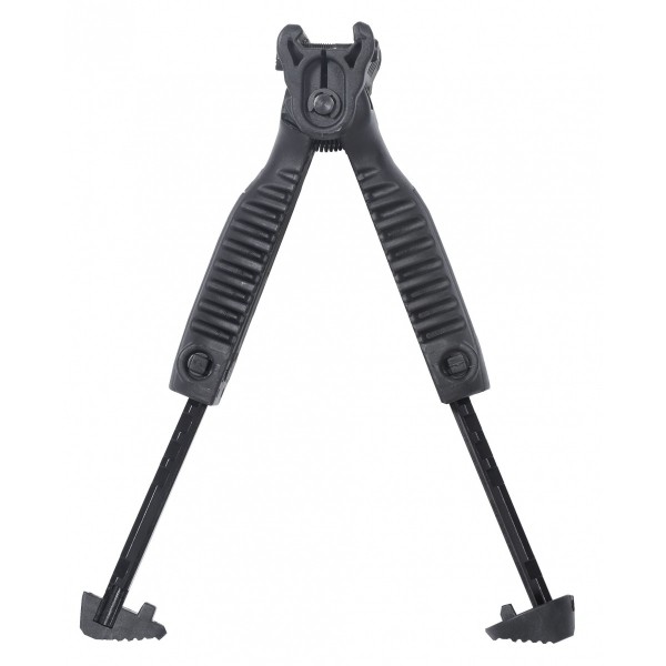 Descriptif | Poignée en plastique noir, légère et très robuste se fixant sur un rail de 21 mm pour assurer un maintien optimal de votre arme, se déploie rapidement par simple pression sur 2 boutons, se transformant ainsi en un bipied extrêmement stable. |