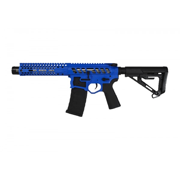 Le récepteur squelette F1 BDR-15 3G en alliage d’aluminium fini CNC copie les indices de style du fusil d’origine Le garde-main KeyMod profilé C7K en aluminium usiné CNC raccourci permet le montage d’une grande variété d’accessoires, le rail supérieur pleine longueur accepte tous les accessoires courants de 2 mm Boîte de vitesses «eSilver Edge» à changement de ressort rapide entièrement évolutive EMG édition spéciale La boîte de vitesses haute efficacité ne tire que 11 ampères à ~ 38 FPS, ce qui en fait l’une des boîtes de vitesses les plus efficaces actuellement sur le marché Les commandes de tir ambidextre permettent aux tireurs droit et gaucher Dispositif de muselière Noveske KX3 encastré dans le protège-main avec canon de longueur PDW pour un look affleurant La finition anodisée offre une finition vive et durable qui résiste à l’usure Déclencheur électronique