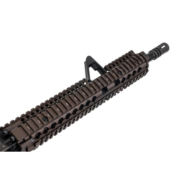 This is a high-quality replica upper receiver set by VFC and is designed for VFC AR / M4 GBB Airsoft rifles. This allows for easy conversion solutions for VFC's AR / M4 GBB Airsoft rifle lineups. The DD Rail Interface System (RIS II) was designed at the behest of the United States Special Operations Command (SOCOM) for the SOPMOD II program. SOCOM had a specific requirement for a free-float M203 solution, and Daniel Defense responded by designing an innovative system to meet the government's need. The DD RIS II allows individual operators to free float the M203 grenade launcher without additional parts. As important, special tools are not required to mount the M203 grenade launcher. This was accomplished by integrating all of the needed parts to free float the M203 into the rail itself. The upper receiver set is compatible with V2 and V3 VFC M4 / AR GBB Airsoft rifles, and is a simple drop-in installation.