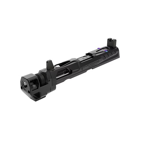 Leveraging fully licensed Killer Innovations’ innovative designs, the PTS Killer Innovations Velocity V1 Slide and Barrel Conversion Kit is precision manufactured from lightweight CNC-machined 6061-T6 aluminum with a hardened anodized coating. This high quality kit will completely elevate the appearance and feel of your Sig Sauer P320 airsoft gas blowback pistol. Installation is quick and easy — no need to modify your original factory parts.