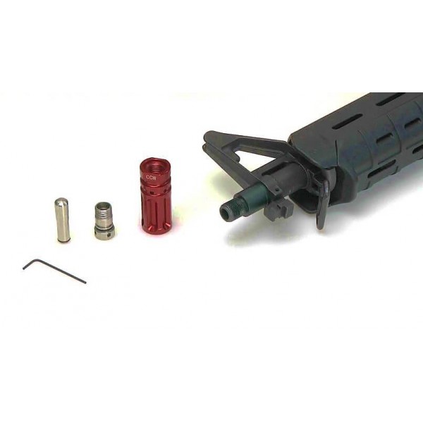 Le FLASH est un adaptateur de suppression de flash usiné CNC haut de gamme qui remplace la protection contre les flashes de série de tous les fusils Airsoft de détail. La cartouche à vibration SureStrike™ est une cartouche 9mm qui s'active par la vibration de l'Airsoft et non par le percuteur comme la cartouche laser classique SureStrike™.