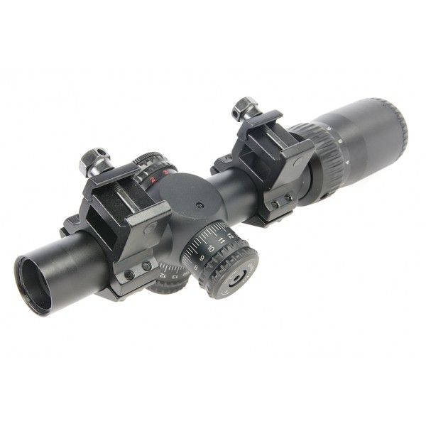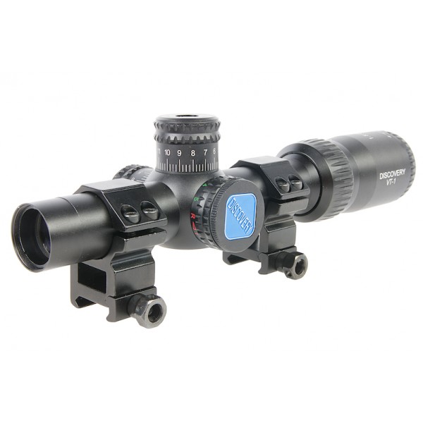 The Discovery VT-1 is a great short to intermediate range second focal plane scope ideal for sighting in and hitting targets at a wide variety of distances. The scope is lightweight and works great as a primary scope for an AR or other semi-auto rifles with crystal clear optics, resistance to the elements, and a high degree shock resistance, enabling it to easily take the recoil impulse of any airsoft rifle. Though not illuminated, the scope features a very clean and easy to read reticle in conjunction with its wide field of view, you will easily be able to stay behind the gun longer and see more of where you are looking at.