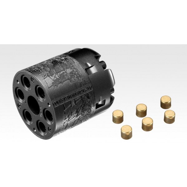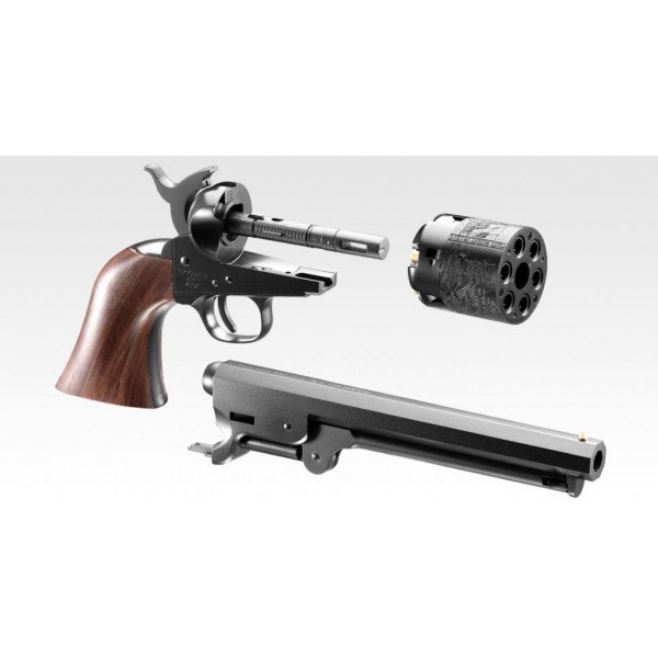 Reproduces various gimmicks The metal loading lever can be operated. The brass percussion cap can be attached to the cylinder, allowing you to enjoy the whole process of loading the cylinder with bullets. In addition, it can be disassembled into three parts, the barrel, cylinder and frame, just like the real thing.