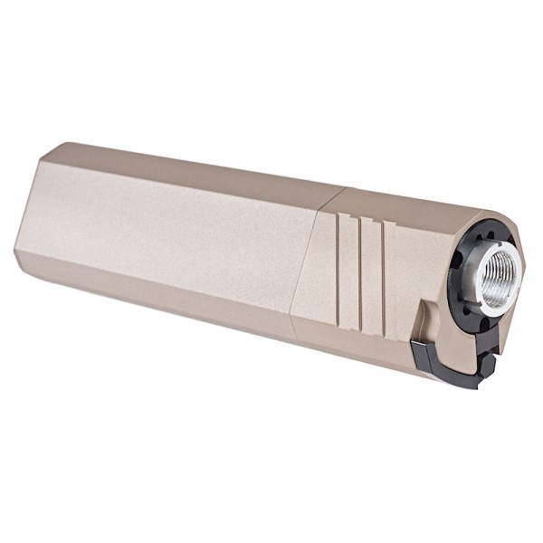 The SilencerCo Osprey 45-K Suppressor comes with one 14mm Clockwisethread cover. It's unique style and shape allows it to sit in front of a pistol without blocking the low rise front and rear sight. You don't have to worry about the angle of the suppressor as you can always fix it if the angle is a little awkward.