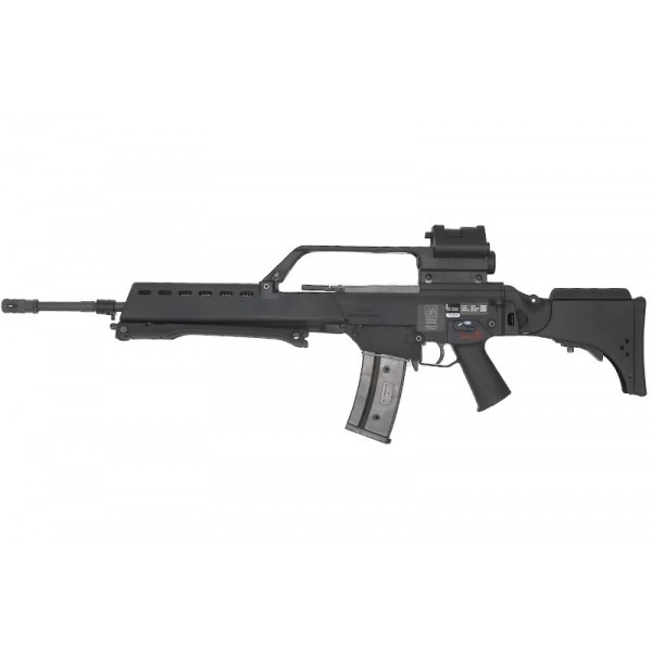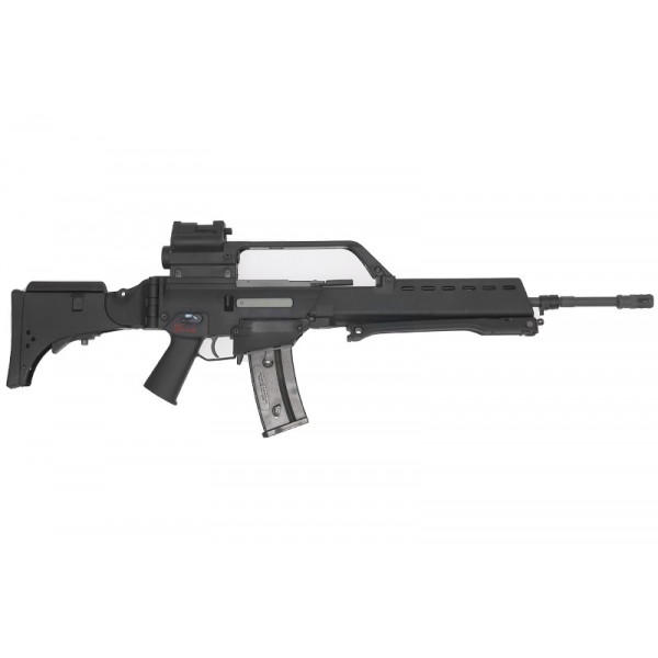 On retrouve ici la réplique SA-G13V EBB basée sur un modèle G36 long, doté d'une crosse ergonomique pliable / rétractable d'un viseur intégré et d'un bipied rétractable intégré.