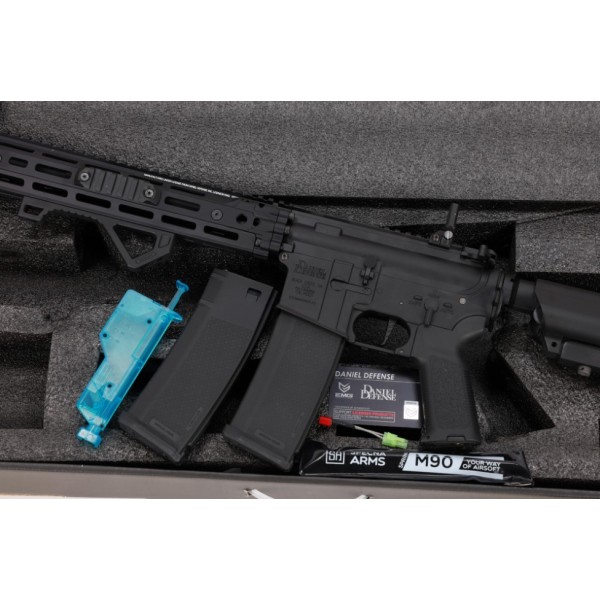 La replique a ete produite en cooperation avec la marque americaine EMG Arms. Elle porte les marques sous licence de Daniel Defense(R) - un fabricant d'armes a feu des Etats-Unis, specialise depuis 2002 dans la fourniture de diverses variantes AR15 et d'accessoires, egalement pour des commandes speciales de l'USSOCOM.
