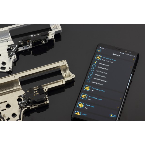 TITAN V3 ™ est un système de gestion/contrôle de votre AEG pour Gearbox V3 qui transformera complétement votre réplique en un système efficace et réglable. Ajustez votre AEG et vérifiez les statistiques à l'aide de l'application USB-Link et GATE Control Station pour les appareils PC et Android. TITAN V3 vous permet d'ajuster la sensibilité de la détente avec une précision militaire.
