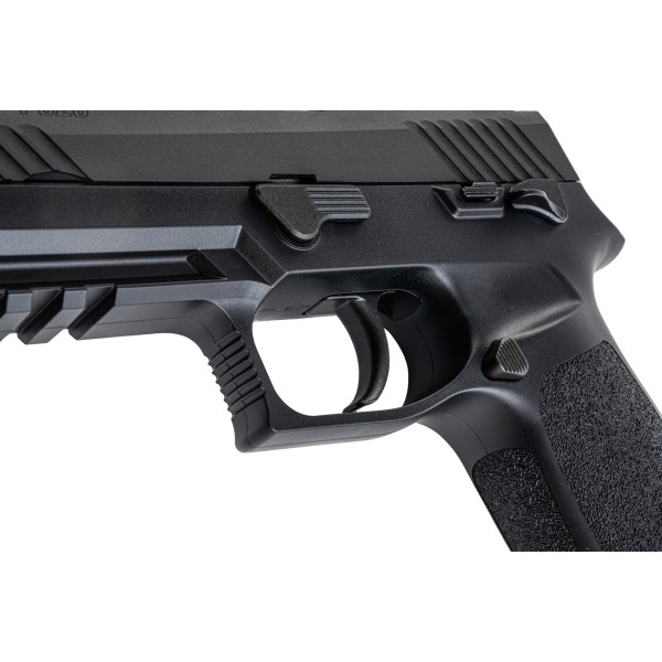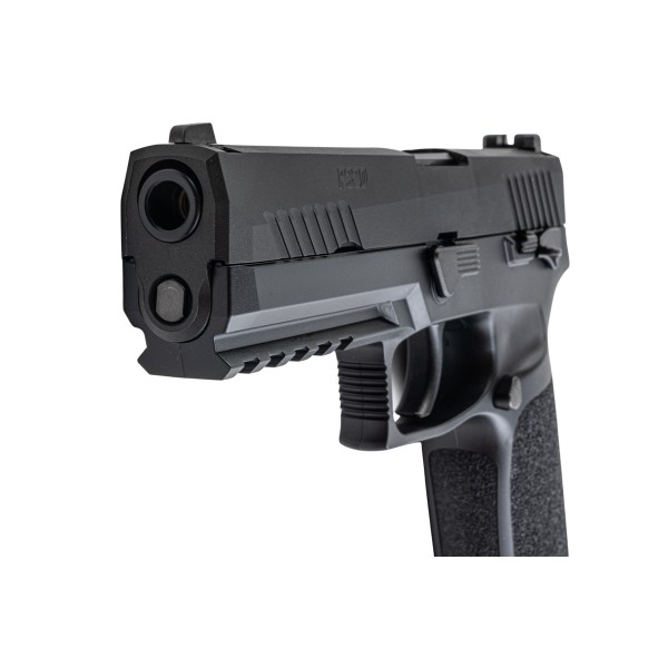 The P320 pistol employs a modular system centered around the FCU (Fire Control Unit), which integrates core functional components like the trigger and hammer into a single unit. This allows the pistol to be reconfigured into handguns of different calibers and sizes by combining components like the barrel and slide. Now, its full-size configuration model joins the gas blowback series!