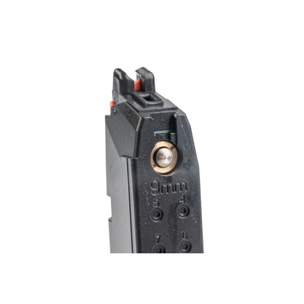 This magazine by Tokyo Marui is designed for the Tokyo Marui G19 Gen 5 GBB Airsoft pistol series. It features new-gen aesthetics with a Gen 5 orange magazine follower. It boasts better gas capacity and gas efficiency compared to older G19 magazines by Tokyo Marui. It has a maximum capacity of 22 rounds of 6mm BBs, with a die-cast metal construction. It is powered by green gas and is a must-have for those who own the venerable Tokyo Marui G19 Gen 5 GBB Airsoft pistol series.