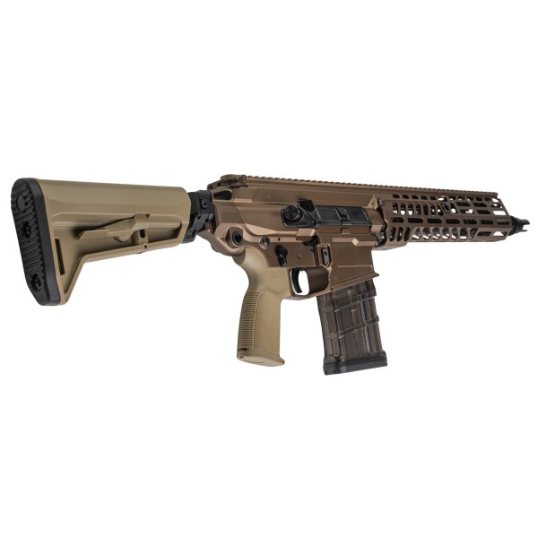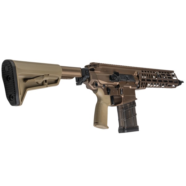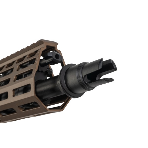Manufactured by PRO W System, the XM5 rifle is faithfully replicated in a 13-inch gas blowback configuration, featuring a 13-inch outer barrel with a quick-detach Taper-lok style flash hider. Its 11-inch Spear Handguard is equipped with an M-LOK rail interface and a monolithic Picatinny upper rail, facilitating the attachment of peripheral and optical devices. Additional M-LOK layers accommodate various accessory angles and anti-rotational QD sockets for sling point mounting. The XM5?s receiver boasts fully ambidextrous fire controls, allowing both right- and left-handed users to transition seamlessly between their main and support hands for smooth weapon manipulation. At the rear, a Picatinny Rail Stock Interface enables users to install their preferred railed stocks or utilise the included 6-position folding buffer tube with the SL-M style stock, providing a stable point of contact for shouldering the rifle and enhancing accuracy. The rifle features sling point connections at both the handguard and rear receiver for 1- and 2-point sling attachments. Its GBB magazine adopts the translucent polymer L7AWM design aesthetic, marked with 7.62x51, and holds 30 rounds of 6mm BBs, offering ample firepower for skirmishes, comparable to most GBB rifles.
