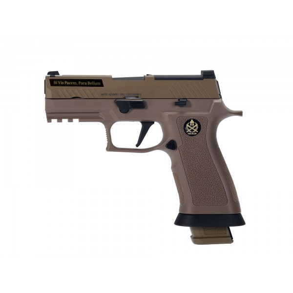This PARA BELLUM PBG320-07TN M18X GBB features an aluminum slide, ambidextrous controls, an optics ready design, and a picatinny under rail for enhanced versatility. Its elongated beaver tail and beveled magwell provide a comfortable and secure grip, while the straight trigger ensures precise and reliable shooting.